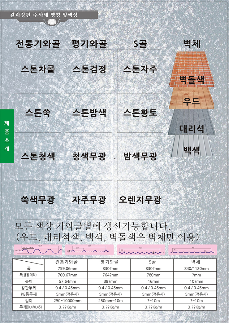 Ä®¶ó°­ÆÇ ÁÖÀÚÀç ¸íĪ ¹× »ö»ó